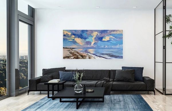 Embellished with a hand-painted, textured surface, this artwork is available in custom sizes to suit your space.