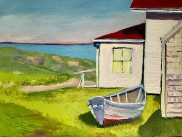 Monhegan Island in Maine is a favorite of many artists, including me! Painted "en plein air" (outdoors, on site).